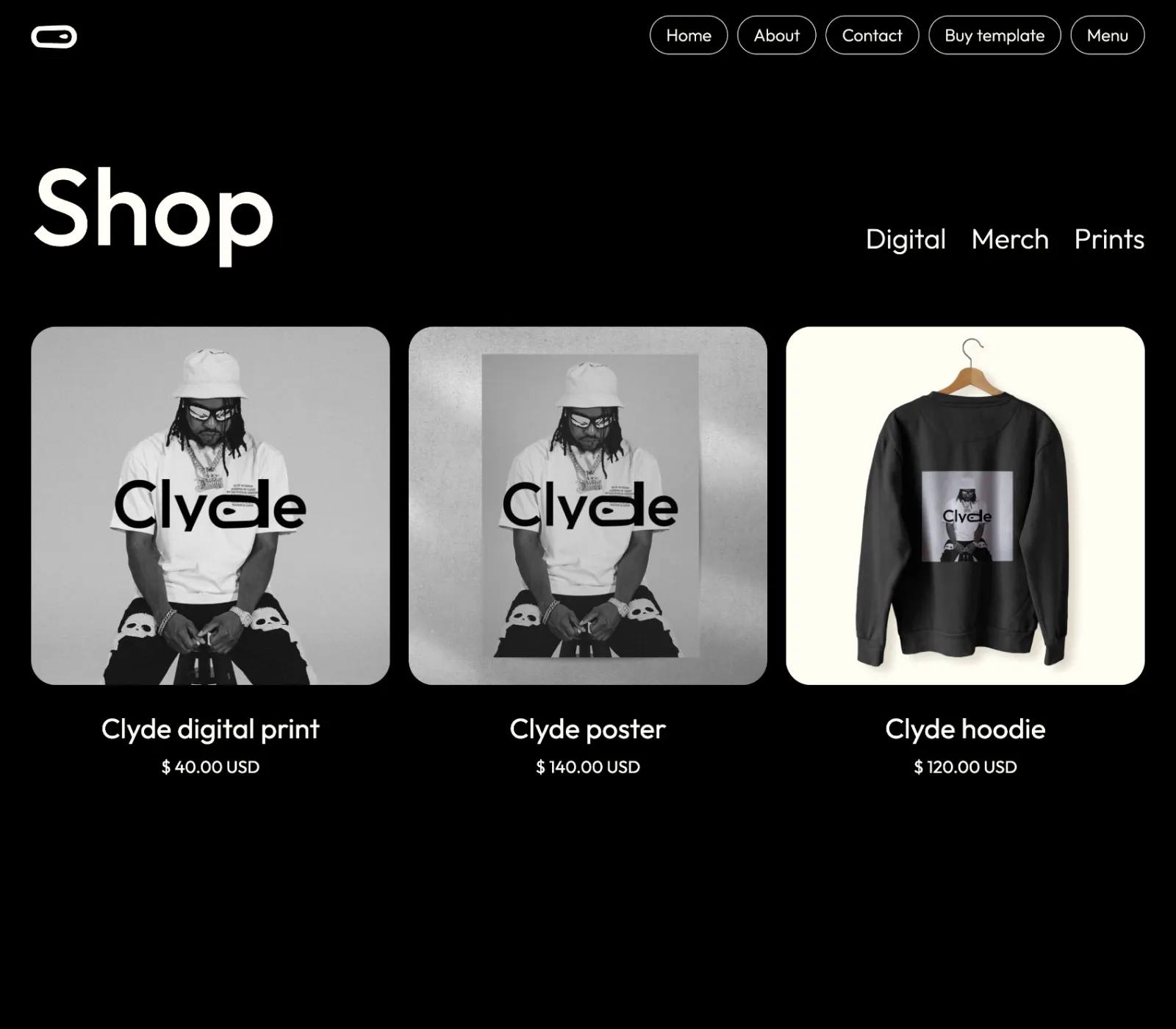 Clyde Template comes with eCommerce set up, so you can start selling your digital and physical products straight away.